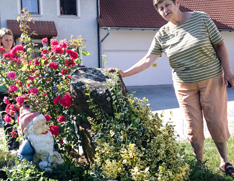 Unter diesem Findling, der heute, um wenige Meter transloziert,  den Bauerngarten von Familie Huber ziert, wurde der Hortfund 1821 entdeckt.