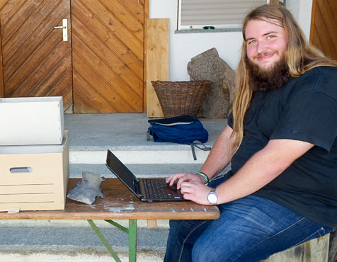Freiluftarbeitsplatz zur Erfassung der Keramikinventare aus Sipplingen im Pfahlbaumuseum, August 2015