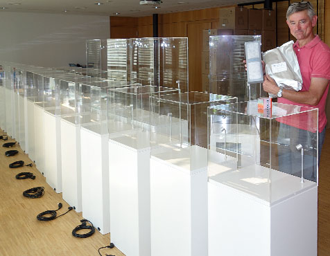 25 Vitrinen sind da zur Probebestückung mit Funden, August 2015