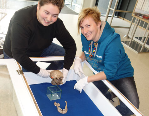 Probelegen und Einrichtung der Vitrinen, Pfahlbaumuseum, September 2015.