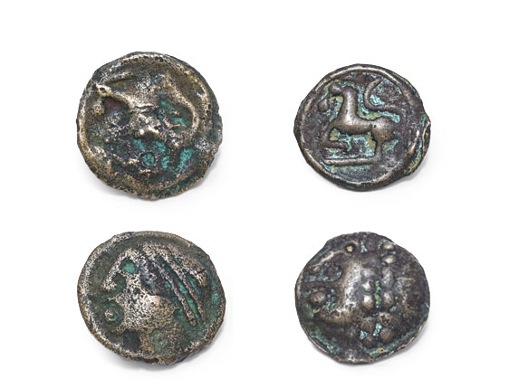 Die schon aus der Argonautensage für ihren Goldreichtum bekannte Region Kolchis in Westgeorgien lag am Handelsweg von Griechenland in die Länder des Orients, Persien und Indien. Hier wurden zahlreiche griechische Münzen aus der Zeit Alexanders III. von Makedonien (Alexander der Große, 356-232 v. Chr.) entdeckt. Ab dem 2. Jh. v. Chr. fing man in der Kolchis damit an, selbst solche Münzen zu prägen und ahmte die griechischen Vorbilder nach (sog. kolchische Goldstatere). Diese Imitationen zeichnen sich durch stark stilisierte Münzbilder aus. Zur gleichen Zeit begannen auch die Kelten solche Münzen, die sie u. a. als Sold für Kriegsdienste in den Heeren der antiken Großmächte erhalten hatten, zu kopieren. So entstanden auch in Zentraleuropa zahlreiche typisch keltisch stilisierte Gold-, Silber- und Bronzemünzen, die hierzulande den Beginn der Geldwirtschaft markieren.